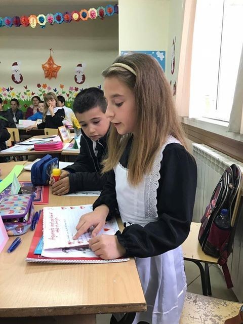 U tërheq vëmendjen nx.duke prezantuar temën e mësimit, tekstin letrar të leximit jashtëklase të autorit të letërsisë për fëmijë, Xhenifer Malinos me titull “Edhe mami punon ”
