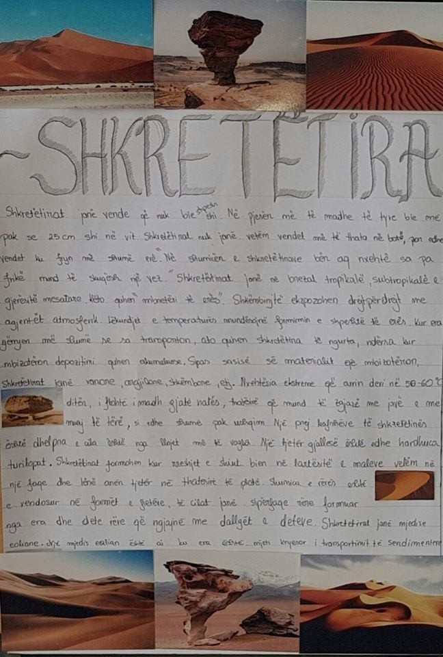 Më poshtë po ju sjell modelin e një projekti ndërlëndor me temë: “Shkretëtirat”, në të cilin janë përfshirë të gjitha fushat, lëndët përkatëse që zhvillohen në gjimnaz dhe nëntemat për çdo lëndë për të realizuar në mënyrën më të mirë të mundshme këtë projekt ndërlëndor, i cili mund të zhvillohet në gjeografinë e klasës së X ose të XI. Projektet ndërlëndore plotësojnë shumë mirë rezultatet e të nxënit për lëndë të caktuara, por janë edhe më të plota, të larmishme dhe argëtuese për nxënësit dhe mësuesit kur realizohen në bazë shkolle.