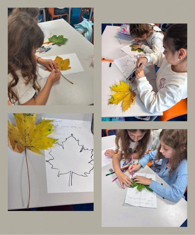 Në vazhdim, për t’i dedikuar edhe një dhuratë të veçantë vjeshte gjyshërve, nxënësit së bashku me mësuesen krijuan një vizatim peizazh brenda konturit të një gjetheje. Këto gjethe vjeshte ishin mbledhur nga vet nxënësit nëpër parqet pranë shtëpive të tyre.