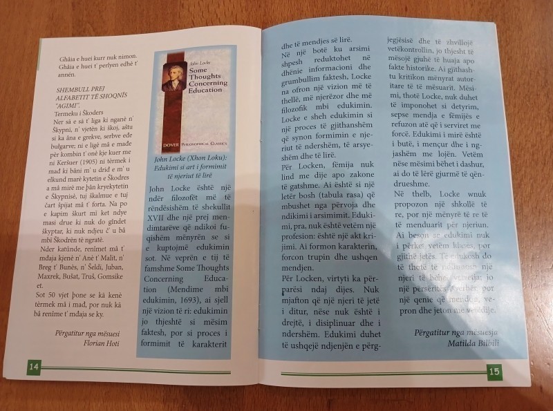 Një falënderim i përzemërt shkon për të gjithë ata mësues që përfshihen me përkushtim në ndërtimin e çdo rubrike, apo që kontribuojnë me shkrimet e tyre, duke e parë këtë revistë jo si një detyrë shtesë, por si një projekt të bukur e frymëzues, ku secili jep diçka nga vetja dhe merr në këmbim dije, mbresa të paharrueshme dhe shumë dashuri.