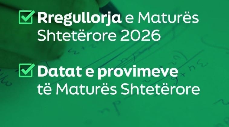 Rregullorja e Maturës Shtetërore 2026 dhe kalendari zyrtar i provimeve janë publikuar. Maturantët do të testohen në qershor për gjuhën e huaj, shqipen, matematikën dhe lëndën me zgjedhje, ndërsa testet model shërbejnë si udhërrëfyes për përgatitjen.