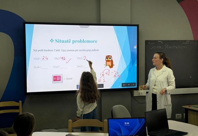 Këtë herë, ju prezantojmë një orë model në lëndën e Matematikës, realizuar në Smart Lab në shkollën 9-vjeçare “Hajdar Zogu” Tapizë, ku mësuesja Alma Loci, së bashku me nxënësit e klasës III-B, e kanë shndërruar shumëzimin në një përvojë të gjallë, ndërvepruese dhe argëtuese për të gjithë.
