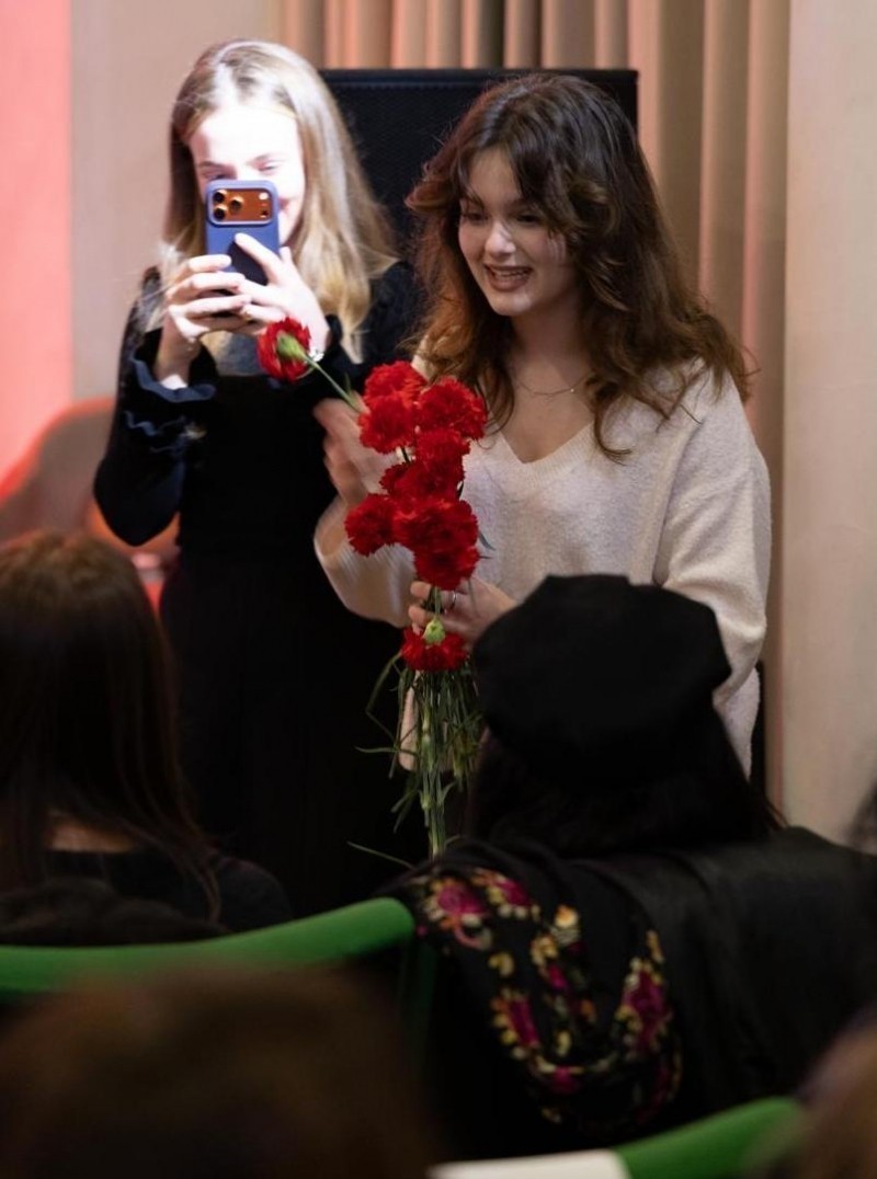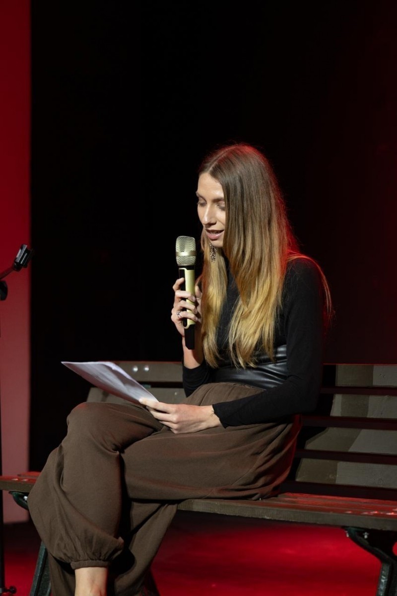 Në interpretimin përmbyllës të mbrëmjes, “Dashuria në vargje”, Altea Alushi, aktore dhe poete, autore e librit “Ëndrra e një dallge” dhe krijuese e “Poezive Filmike”, solli një reflektim të fuqishëm mbi dashurinë: ajo tha se dashuria ndërton dhe rrëzon qytetërime, nuk zhduket, por transformohet, dhe dashuria e parë mbetet përmes një kujtimi ose ndjesie.