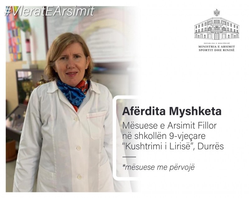 Mësuese Afërdita Myshketa, ose siç e njeh i gjithë Durrësi dhe jo vetëm, mësuese Tina, mbetet një nga shembujt më frymëzues të profesionit të mësuesit.